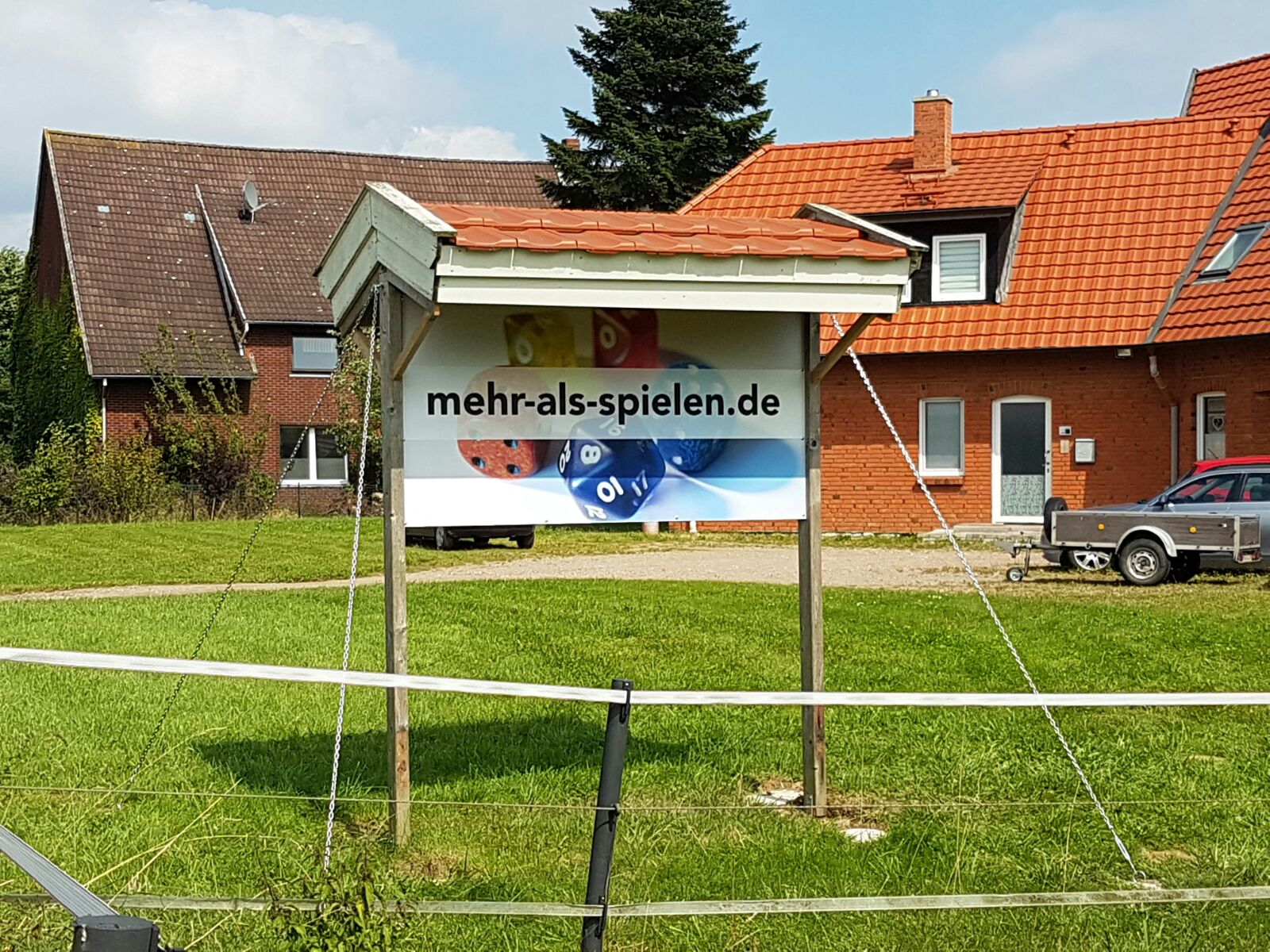 Graben, betonieren , Schrauben, bohren und und und. Eine Menge Arbeit solch ein Werbeschild, richtig in Position zu bringen. Aber jetzt hängt es schon mal. Zwar noch mit provisorisch angebrachten Brettern, damit es nicht umkippt, aber es ist schon mal zu sehen.