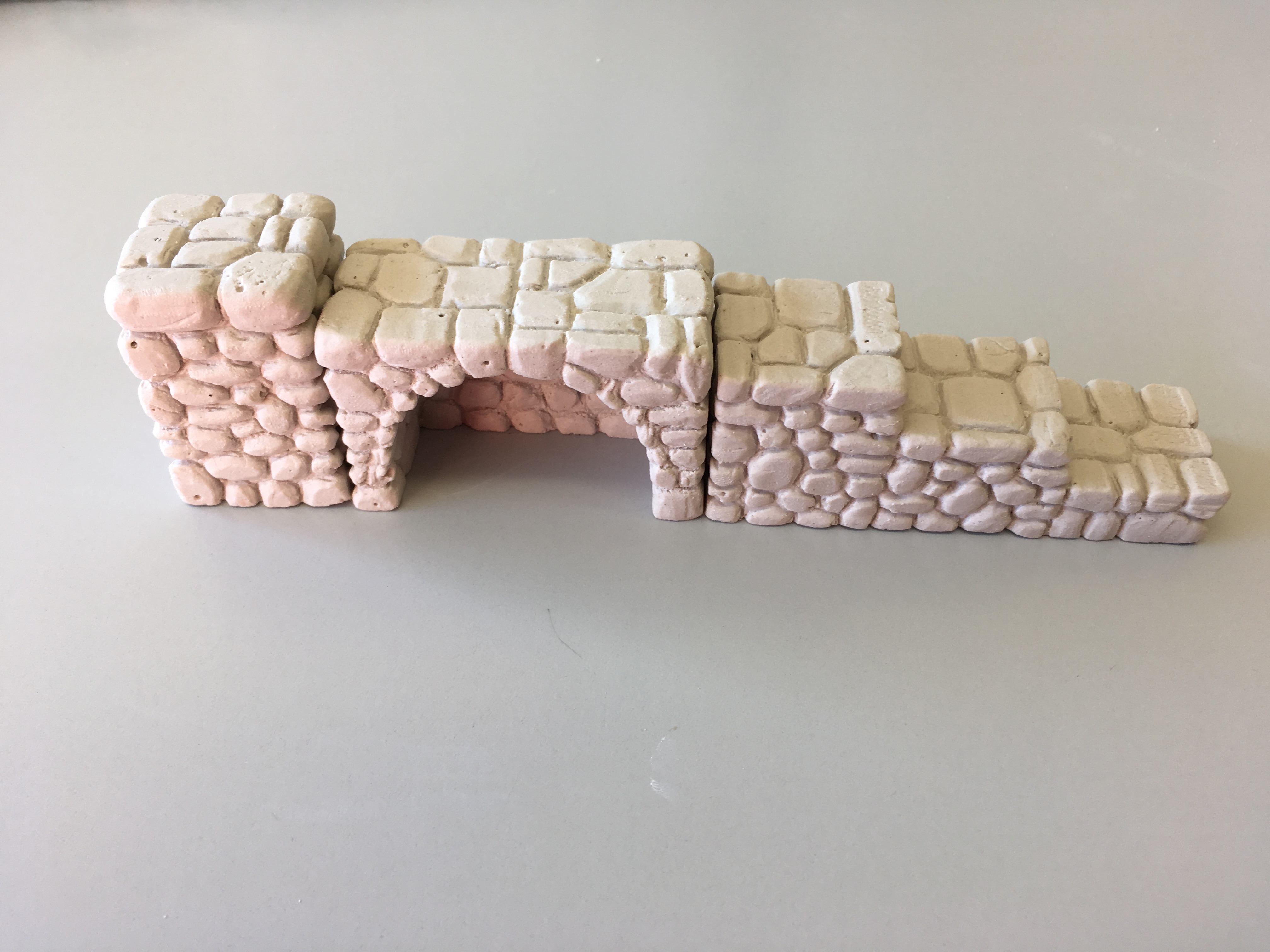 Eine Treppe um nach Unten zu gelangen , eine Säule und ein Bogenfeld ist auch zum Abgießen angefertigt.