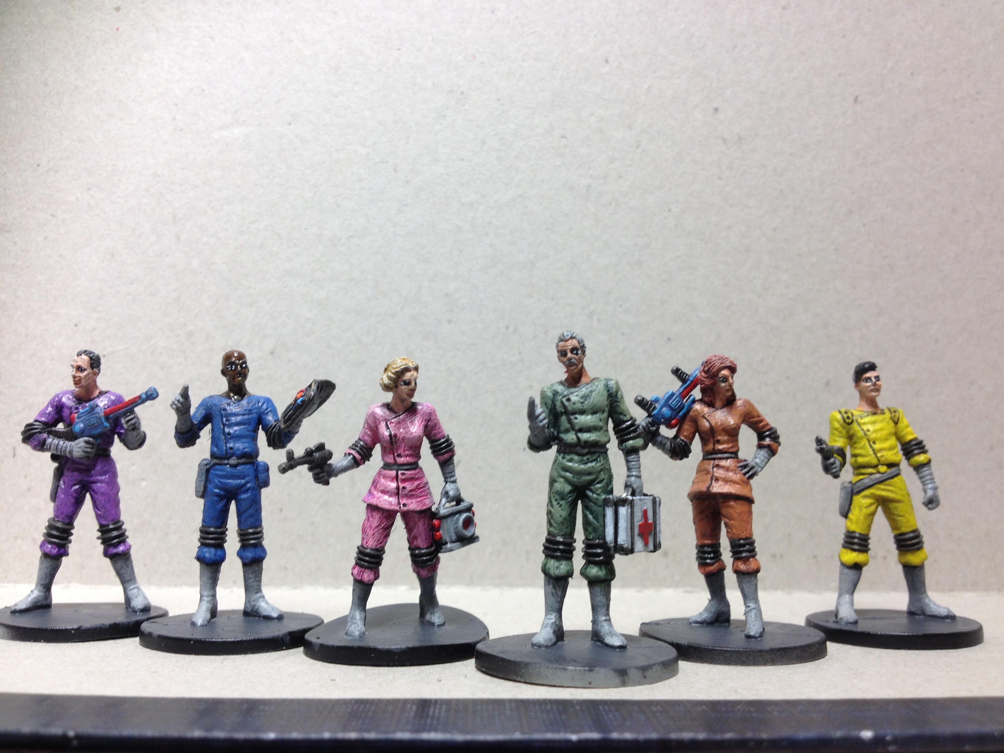 Ein wenig besser sehen sie schon aus. Die Hauptfiguren kommen in Spielerfarben . Der Rest wird wohl passend zu Mars Attacks gemalt.