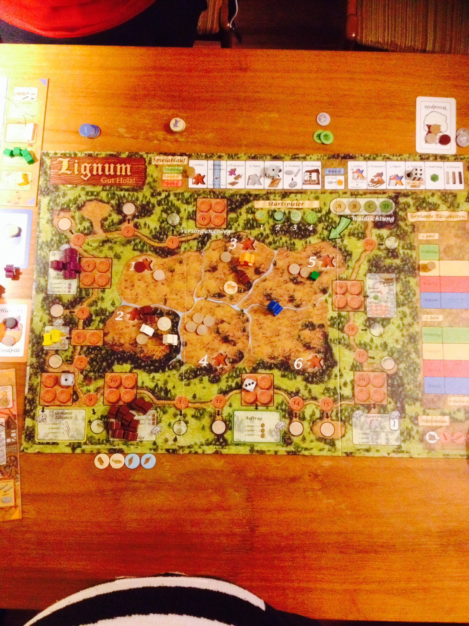 Heute haben wir zu dritt ,ein neues Spiel ,von Steffi getestet .Lignum gut Holz, wie ihr schon dachtet , geht es um Holz. Ein sehr strategisches Brettspiel in dem man gut vorausplanen sollte.Wer genügend Holz gerodet, das über Land oder Wasser transportieren konnte, damit es dann zurecht gesägt werden kann ,um es zum Schluss wieder zu verkaufen , hat genügend Geld verdient. Darum geht es...